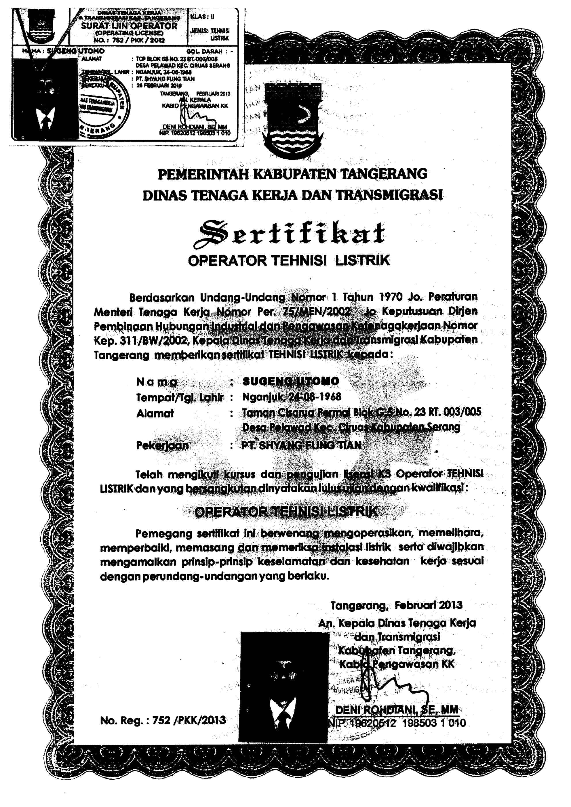 SFT employees have attended Electric Welding vocational skills training held by the Tangerang Regency Manpower and Transmigration Office. Aims to carry out work safety procedures in carrying out welding work continuously, using electric welding equipment properly.